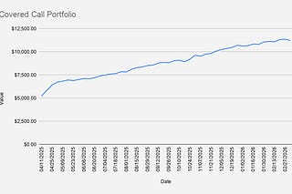As of February 13, 2026, our covered-call stock portfolio has decreased slightly by -0.33% and closed at $11,069.