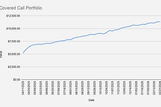 As of February 20, 2026, our covered-call stock portfolio has increased by +2.20% and closed at $11,312.