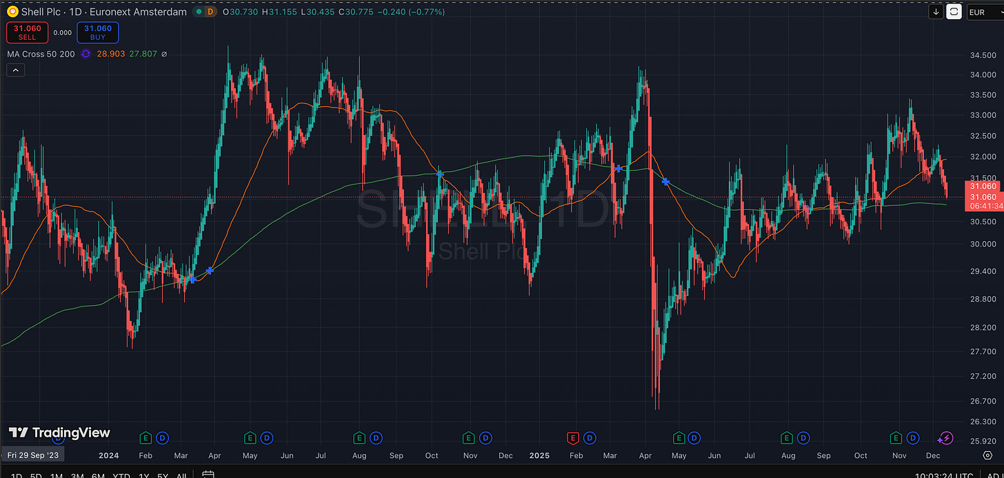 As usual, we made no major moves throughout the week. Except I decided to roll our position in European SHELL stock down and out, buying back the 31 puts expiring on December 19, 2025 and selling new puts expiring on February 17, 2026. This adjustment brought in a small additional credit of EUR 7, while improving our downside protection by roughly EUR 200. As long as SHELL trades above 29, we should be fine.